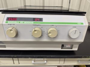 This Sorvall RT6000D benchtop centrifuge is in good condition. It has been refurbished and comes with a 90 day warranty. This unit also comes equipped with a swinging bucket rotor with 4 x 750 ml buckets and inserts for 15 and 50 ml tubes.