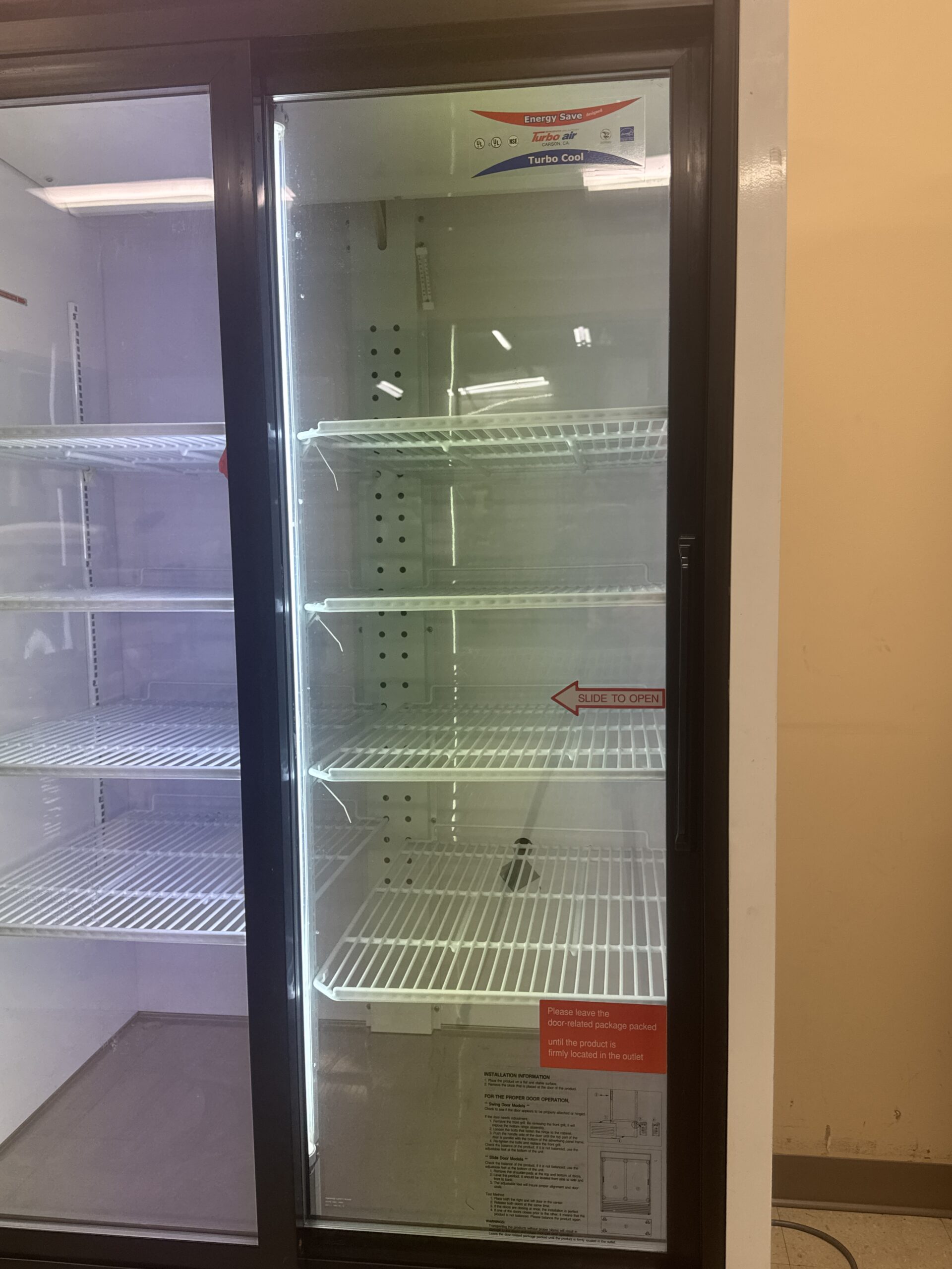 This Refurbished Turbo Air TGM-35R 4C Sliding Glass Door Refrigerator is designed to provide exceptional cooling performance with a sleek, space-saving design. Featuring two sliding glass doors, this unit is perfect for laboratory environments or retail spaces that require easy access and high visibility for stored contents.